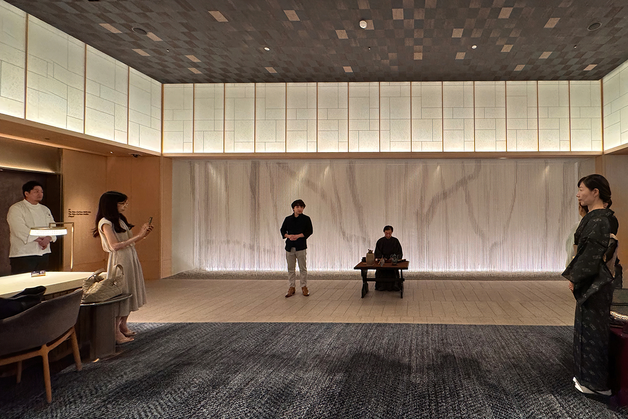 Against the backdrop of his masterful work, “Winter Pine Trees in Genkai Landscape” (寒松玄海図), a space imbued with the aesthetic of In-ei Raisan (In Praise of Shadows) will transform into a serene tea ceremony venue. Here, Mr. Masashi Harashima, a leading authority on Yame-cha and a master of the Kofusencha Reishiki school of sencha, will conduct a special Yame-cha tea ceremony. Witness as a monumental contemporary artwork becomes a “kakejiku” (hanging scroll), and our modern hotel space is reimagined as a “chashitsu” (tea room), creating a rare setting for dialogue between humanity and nature, space and emptiness.