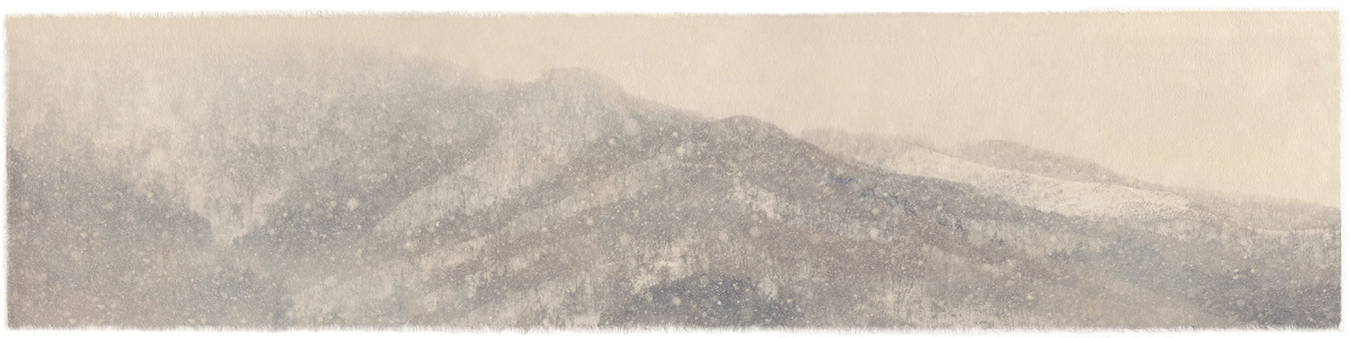 この経験は後に作品として結実した。霧や雪が立ち現れる瞬間の感覚は、理論に先立つ身体的な体験であり、制作の縁起となっている。
