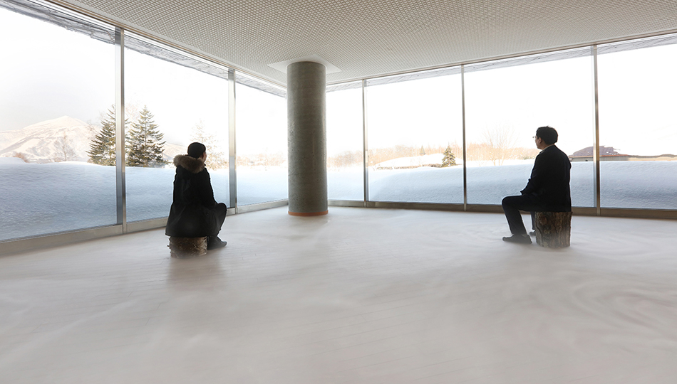 当時、私は二ヶ月間のインターンシップで初めて北海道・伊達市を訪れていた。言葉も分からないまま滞在していたある日、二十年ぶりの吹雪に遭遇した。視界は閉ざされ、恐怖と同時に安心感や懐かしさを覚えた。そのとき体験したのは、欠如ではなく、すべてが均質に包み込まれるような「自然余白」の感覚だった。